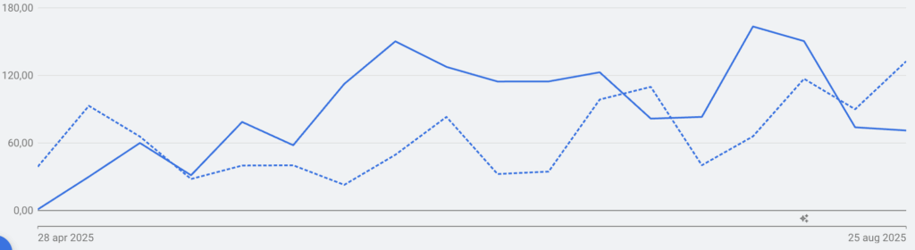 – – = Conversies Google Ads – 1 mei t/m augustus 2024
